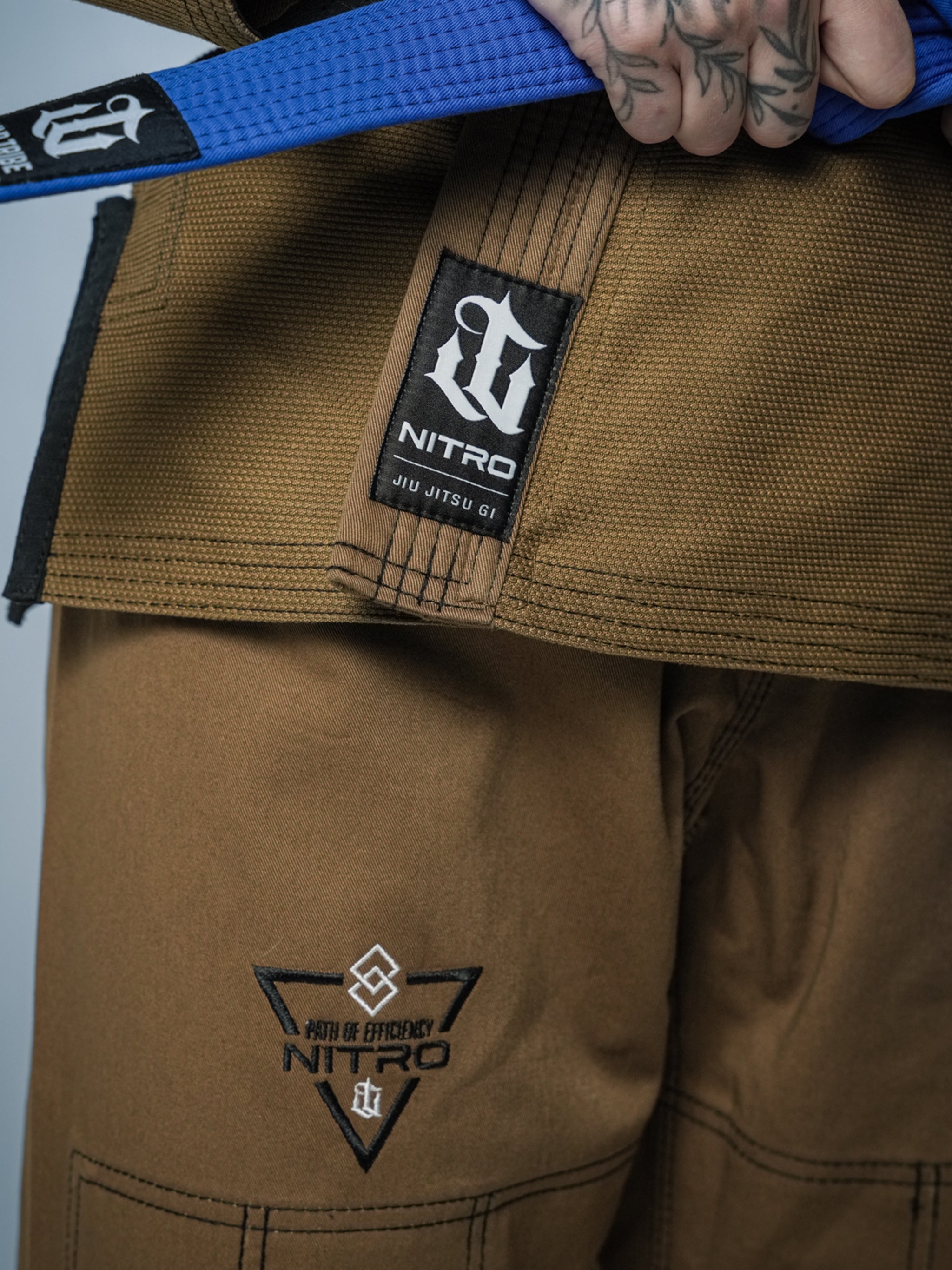 Explosive, controlled power, precision, and intent. Inspired by those who bring intensity to every roll. Featuring a unique brown-green tone with bold embroidered details, the Nitro Gi delivers strength and durability. It’s not just a Gi, it’s a statement of controlled aggression and unwavering efficiency.